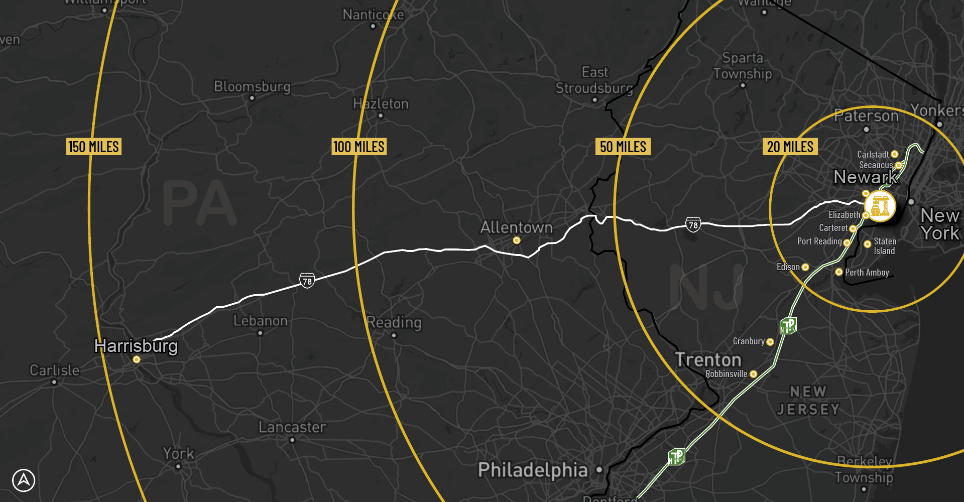 Perth Amboy | Route 287/Exit 10 | $495.00 | 22.1 Miles |